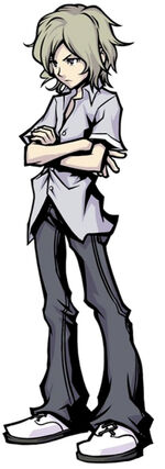 Es un personaje positivo y alegre, casi lo opuesto a que es Neku durante la primera parte del juego, básicamente.